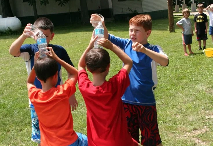 Aiming without looking is extremely difficult for everyone involved. Much of the water inevitably splashes down onto waiting faces and shoulders instead of the target cup. This simple activity builds teamwork, guaranteeing everyone gets delightfully drenched.