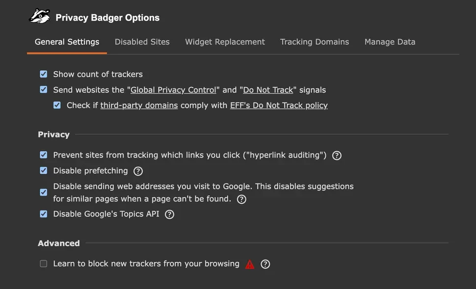 Red sliders mean completely blocked trackers; yellow indicates partial blocking where trackers serve necessary functions. Privacy Badger requires zero configuration, learning automatically as you browse. The number badge updates in real-time, showing how many trackers this browser privacy extension stops on each page you visit. Install Privacy Badger once, protect yourself everywhere.