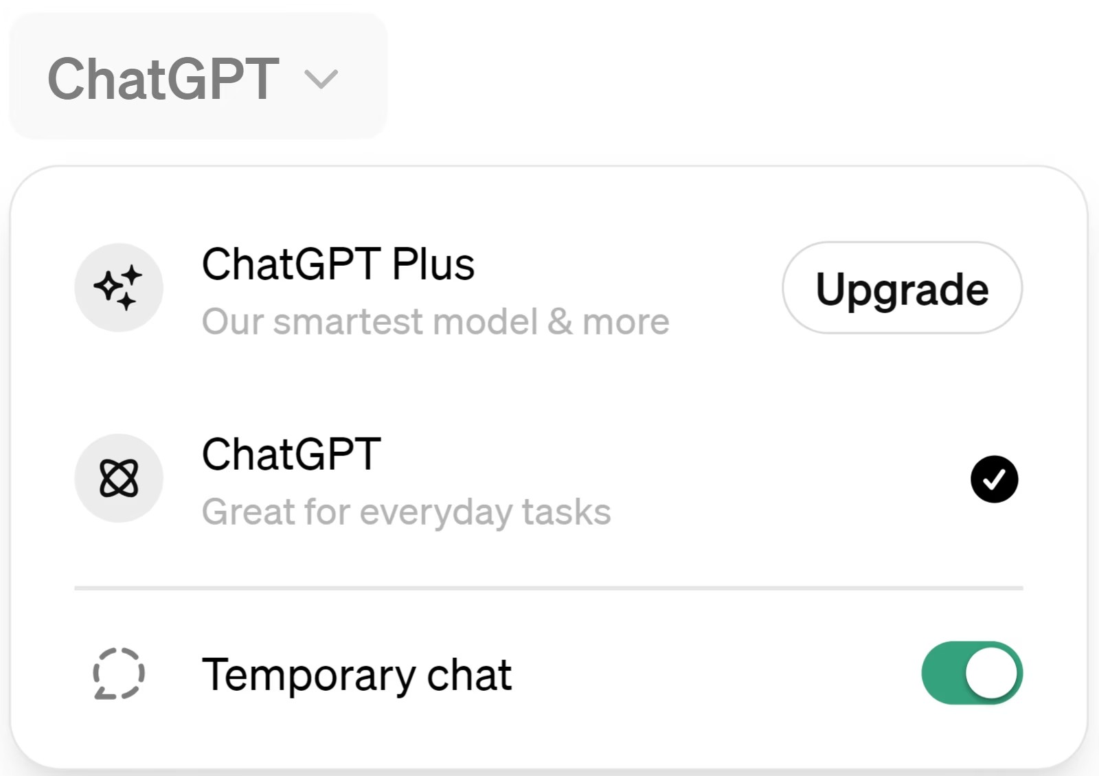 This 2025 feature is a better option for single, sensitive conversations. A Temporary chat is not saved to your history. It is not used for training. And it is auto-deleted after 30 days (unless the legal hold applies).